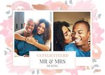 Feliciteer het pas getrouwde stel met deze leuke fotokaart met aanpasbare naam
