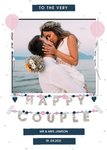 Vrolijke fotokaart met naam en de tekst: To the very happy couple mr & mrs [naam] [datum]