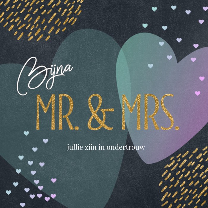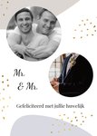 Het is feest want iemand gaat trouwen! Stuur daarom een leuke huwelijkskaart met pasteltinten van Greetz! Op deze kaart staat: Mr. & Mr. Gefeliciteerd met jullie huwelijk. Ook kun je twee foto's toevoegen.
