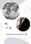 Het is feest want iemand gaat trouwen! Stuur daarom een leuke huwelijkskaart met pasteltinten van Greetz! Op deze kaart staat: Mr. & Mr. Gefeliciteerd met jullie huwelijk. Ook kun je twee foto's toevoegen.