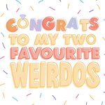 Grappige felicitatiekaart met de tekst: Congrats to my two favourite weirdos