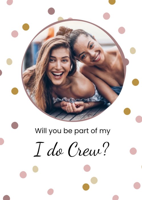 Stuur je getuige deze leuke kaart. Je kunt een foto van jullie samen toevoegen. Onderaan staat de tekst: will you be a part of my i do crew?