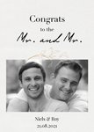 Wie wil jij verrassen met een leuke huwelijkskaart van Greetz? Op deze minimalistische kaart staat: Congrats to the mr & mr. Ook kun je een foto, een naam en datum toevoegen.