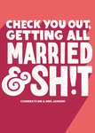 Grappige felicitatiekaart met aanpasbare naam en de tekst: Check you out, getting all married & shit.