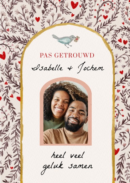Verras met deze zoet huwelijkskaart. De tekst en foto zijn aanpasbaar.