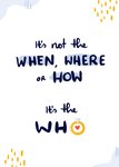 Leuke huwelijkskaart met de tekst: It's not the when, where or how it's the who