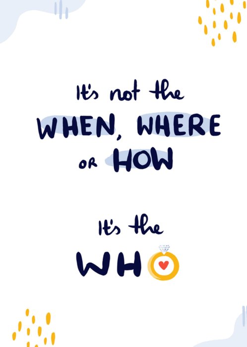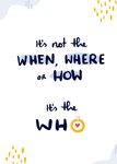 Leuke huwelijkskaart met de tekst: It's not the when, where or how it's the who