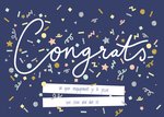 Vrolijke felicitatiekaart met confetti en aanpasbare naam.