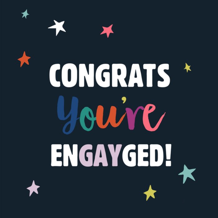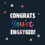 Een vrolijke verlovingskaart met de tekst: Congrats you're engayged!