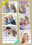 Vrolijke fotokaart met de tekst: Sending love and hugs. Happy anniversary!