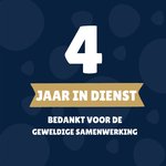 Op deze kaart staat met grote letters: 4 jaar in dienst. Daaronder staat de tekst: Bedankt voor de geweldige samenwerking!
