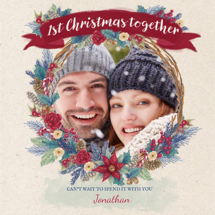 Wens een fijne Kerst met deze leuke kerstkaart van Greetz! Op deze kerstkaart staat: 1st Christmas together. Je kunt een naam toevoegen.