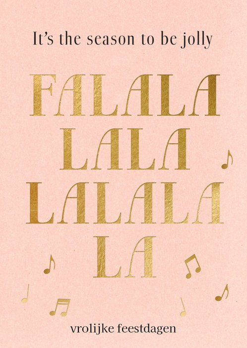 With Christmas we wear pink! Stuur deze vrouwelijke roze kerstkaart naar je vriendin, moeder, oma of tante. Op deze roze kerstkaart staat in gouden letters: It's the season to be jolly. Falalalalala. Vrolijke feestdagen.