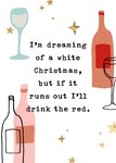 Stuur deze leuke kerstkaart tijdens Kerst. Op de kaart staat: I'm dreaming of a white Christmas, but if it runs out I'l drink the red.