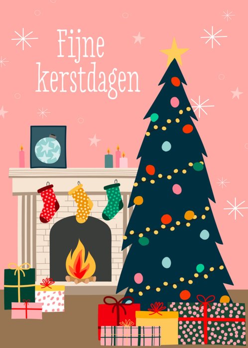 Weet jij al wie je gaat verrassen deze Kerst met een vrolijke en kleurrijke kerstkaart? Stuur deze leuke kaart van Greetz om een glimlach op iemands gezicht te toveren. Op de kaart zie je een openhaard, kerstboom, cadeaus en de tekst: Fijne feestdagen.