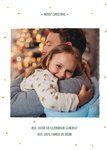 Merry Christmas. Veel liefde en gezondheid wens je iedereen met deze frisse kerstkaart. Voeg jouw leukste foto toe en pas de naam onderaan aan. De gouden stipjes op de witte achtergrond maakt het kaartje compleet.
