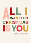 De Kerst komt eraan! Tijd om te bedenken welke kerstkaart jij dit jaar gaat sturen. Kies bijvoorbeeld deze leuke kaart van Greetz! Op de kaart staat: All i want for Christmas is you....and a puppy.