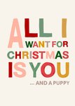 De Kerst komt eraan! Tijd om te bedenken welke kerstkaart jij dit jaar gaat sturen. Kies bijvoorbeeld deze leuke kaart van Greetz! Op de kaart staat: All i want for Christmas is you....and a puppy.