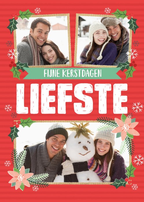 Vrolijke kerstkaart met foto's en de tekst: Fijne kerstdagen liefste.