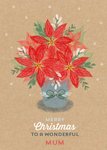 Vrolijke kerstkaart met kerststerren en de tekst: Merry Christmas to a wonderful mum