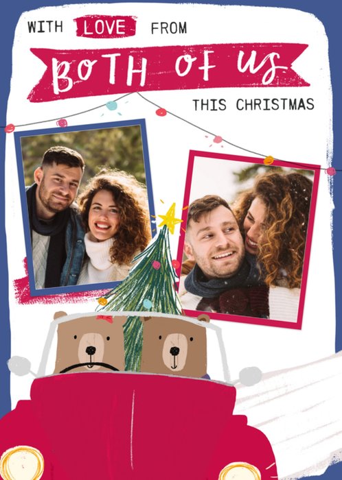 Schattige kerstkaart met beren en foto's en de tekst: With love from both of us this Christmas.