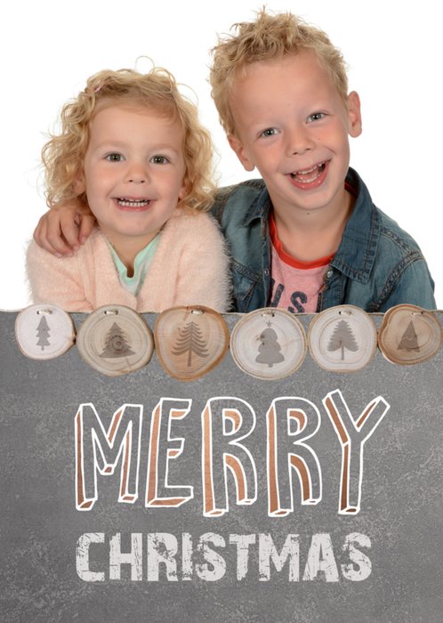 Merry Christmas kaart met verschillende kerstbomen. Voeg een lieve of leuke foto van jezelf toe aan de kaart.