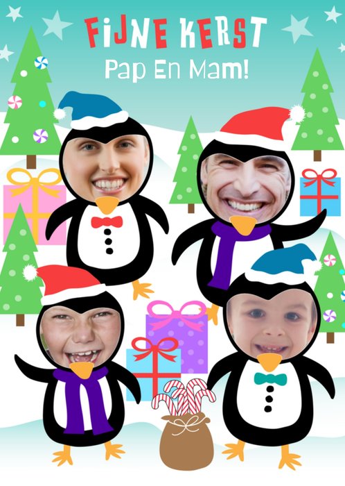 Grappige kaart met foto's en de tekst: Fijne kerst pap en mam!