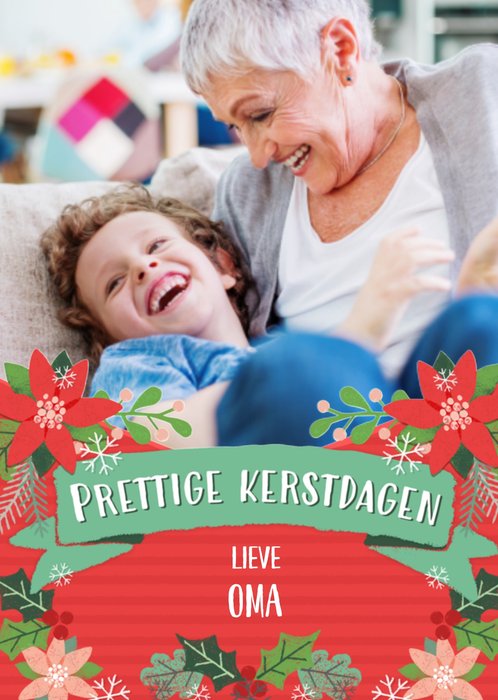 Leuke fotokaart met de tekst: Prettige kerstdagen lieve oma.