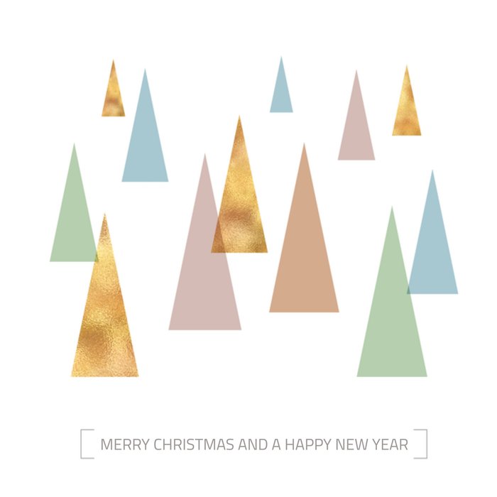 Wens uw zakelijke relaties een fijne kerst en een goed nieuw jaar met dit strakke design. Een witte achtergrond met pastel-kleurige kerstbomen.