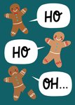 Grappige kerstkaart met illustratie van gingerbread mannetjes.