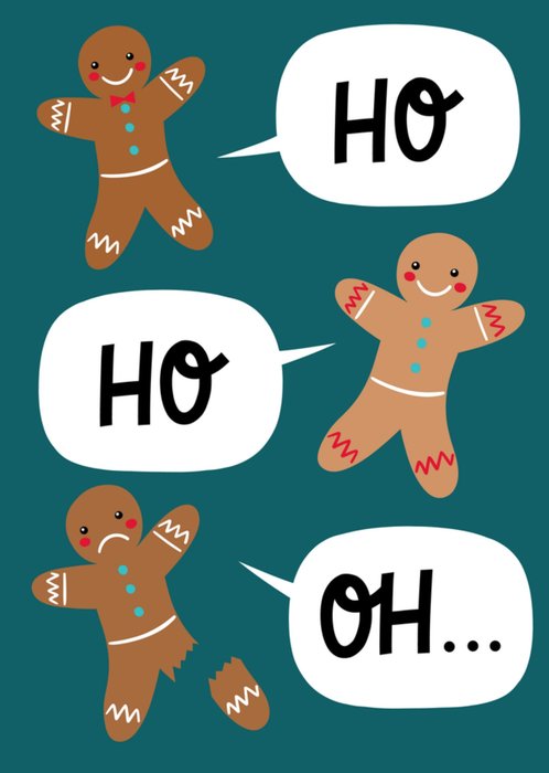 Grappige kerstkaart met illustratie van gingerbread mannetjes.