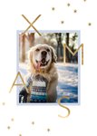 Wens vrienden en familie een gelukkig nieuwjaar met dit hippe kerstkaartje. Deze witte kaart met gouden sterren staat: Xmas. Je kunt ook een foto toevoegen.
