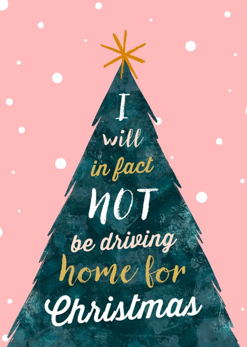 Leuke kerstkaart met de tekst: I will in fact not be driving home for Christmas.