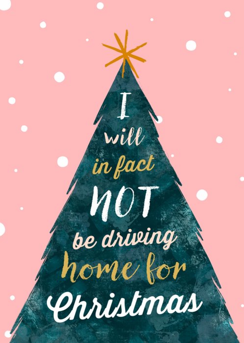 Leuke kerstkaart met de tekst: I will in fact not be driving home for Christmas.