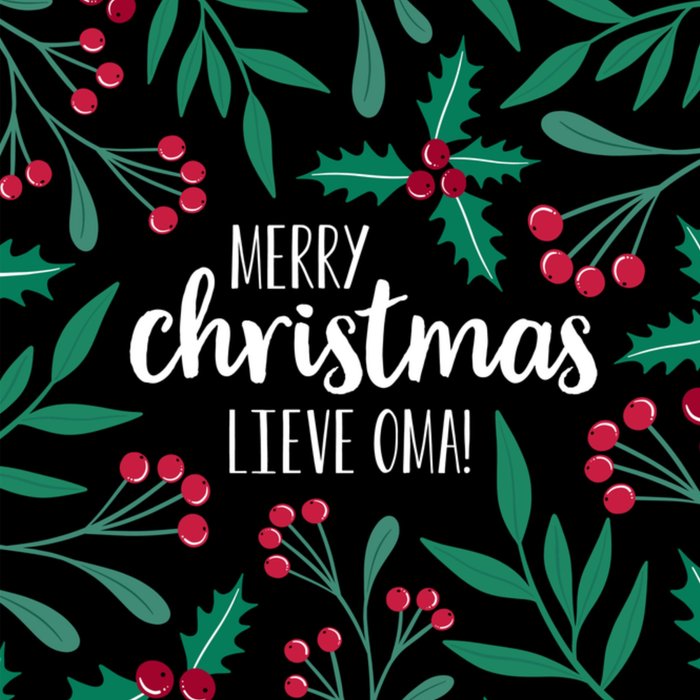 Leuke kerstkaart met illustratie en de tekst: Merry Christmas lieve oma!