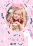 Vrolijke kerstkaart met foto en naam.