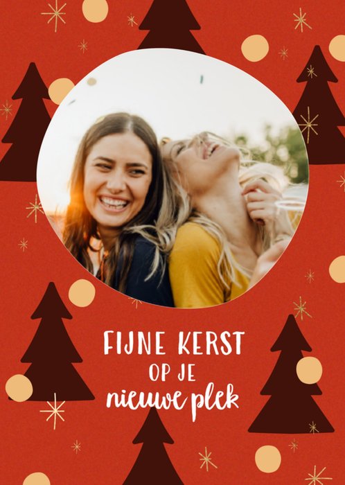 Leuke kerstkaart met foto en de tekst: Fijne kerst op je nieuwe plek.