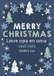 Wat fijn, het is weer bijna Kerst. Tijd om een kerstkaart te versturen. Op deze leuke kerstkaart staat: Merry Christmas nan & grabddad. Love from [naam].