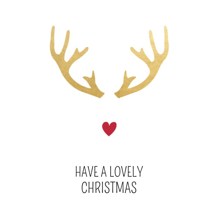 Have a lovely christmas met dit schattige kaartje. Je ziet een gewei van een rendier met een hartje als neus. Zou het Rudolf zijn?