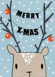Op deze super schattige kerstkaart van Greetz zie je een rendier met tussen zijn gewei een slinger met de tekst: Merry X-mas.