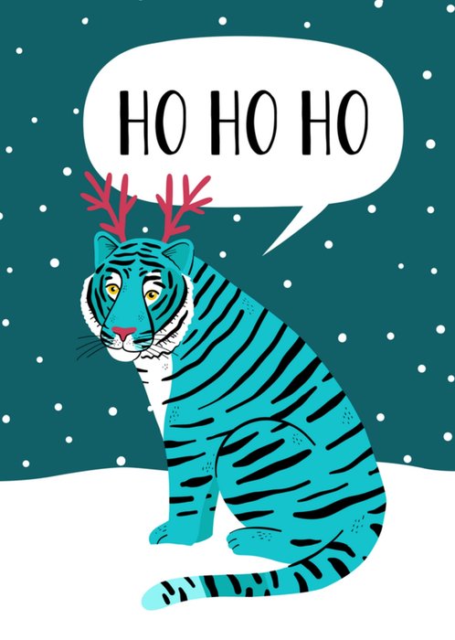 Leuke kerstkaart met illustratie van een tijger in de sneeuw.