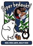 Verras en maak blij met een leuke kerstkaart van Greetz! Want hoe leuk is het om iemand te verrassen met een kerstkaart? Op deze leuke kerstkaart staat: Super bedankt! Heel veel liefs. [naam].