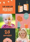 Leuke uitnodiging voor een kinderfeestje. Op de kaart kun je een foto en datum zetten.