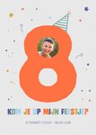 Vrolijke, gestreepte uitnodiging waar een eigen foto op kan worden toegevoegd. De uitnodiging is van Greetz.