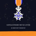 Ken je iemand die dit jaar een lintje krijgt tijdens Koningsdag? Verras hem of haar dan met deze leuke kaart van Greetz. Op de kaart zie je een lintje en de tekst: Gefeliciteer met je lintje. Je hebt het verdiend!