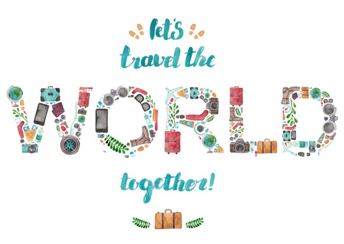 Lieve kaart met de tekst: Let's travel the world together!