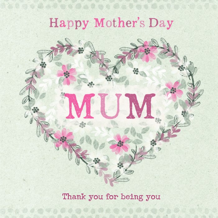 Leuke moederdagkaart met hartje en de tekst: Happy Mother's day.