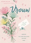 Mooie Moederdagkaart met een bosje bloemen en de tekst: Voor mijn prachtige vrouw op Moederdag.