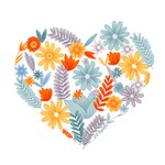 Een fleurige moederdagkaart met een hart van bloemen erop.