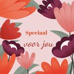 De voorkant van de kaart is gevuld met een afbeelding van roze bloemen. Hiervoor de tekst, speciaal voor jou.
